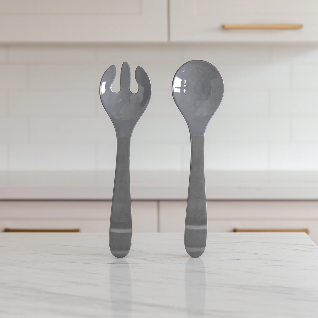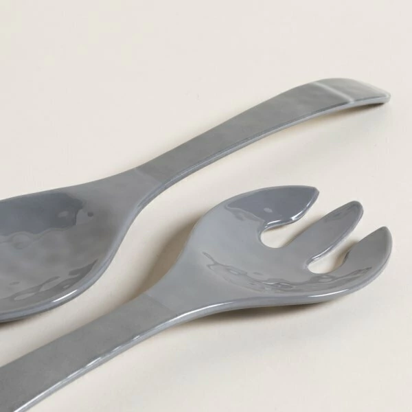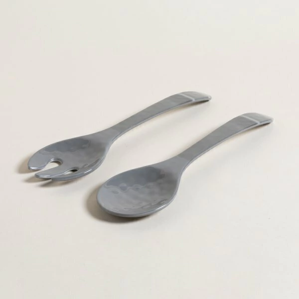 SET DE TENEDOR Y CUCHARA DE MELAMINA GIZA GRIS PARA ENSALADA